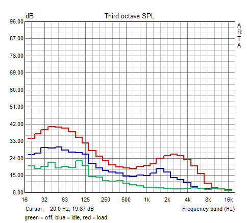 | Idle avg * (dB) | 29 | 31.2 -8% | 29.1 -0% | 29.1 -0% | 29.2 -1% |