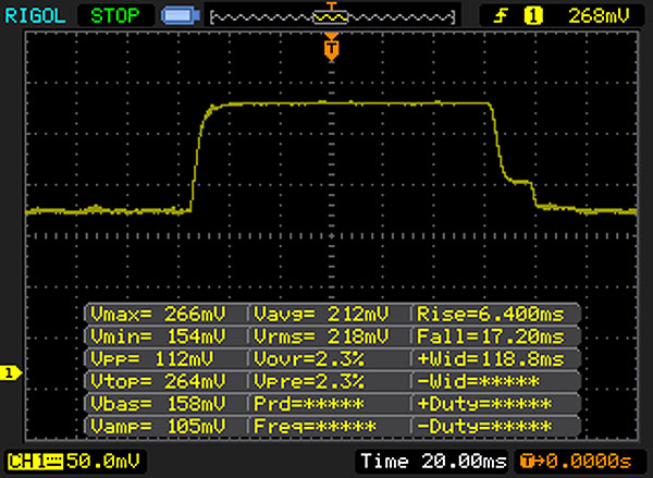 | 23 ms ... steigend ↗ und fallend ↘ kombiniert | ↗ 6 ms steigend | |