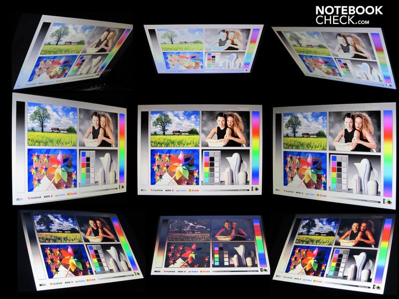 Der Inhalt des 15.6-Zoll matten Displays ist aus fast allen Blickwinkeln gut erkennbar. Erst wenn der Betrachtungswinkel die 45-Grad übersteigt, ändert sich die Helligkeit beziehungsweise das Bild invertiert sich. In den typischen Betrachtungswinkeln, das heißt das Display in einem 90 Grad Winkel aufgestellt, ist der Bildschirminhalt auch von der Seite gut erkennbar. Wird der Bildschirm mehr als 40 Grad nach hinten gekippt, invertiert das Bild.