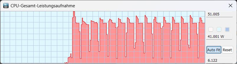 Im Stresstest für eine Stunde mit Prime95 und Furmark gleichzeitig takten die CPU-Kerne kurz auf 4,7 GHz hoch und gönnen sich 51 W. Danach fallen die Werte und stabilisieren sich bei rund 4,1 GHz und 41 W. Dabei erhitzt sich der SoC auf etwa 81 °C.