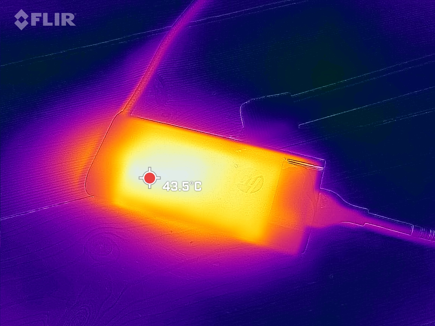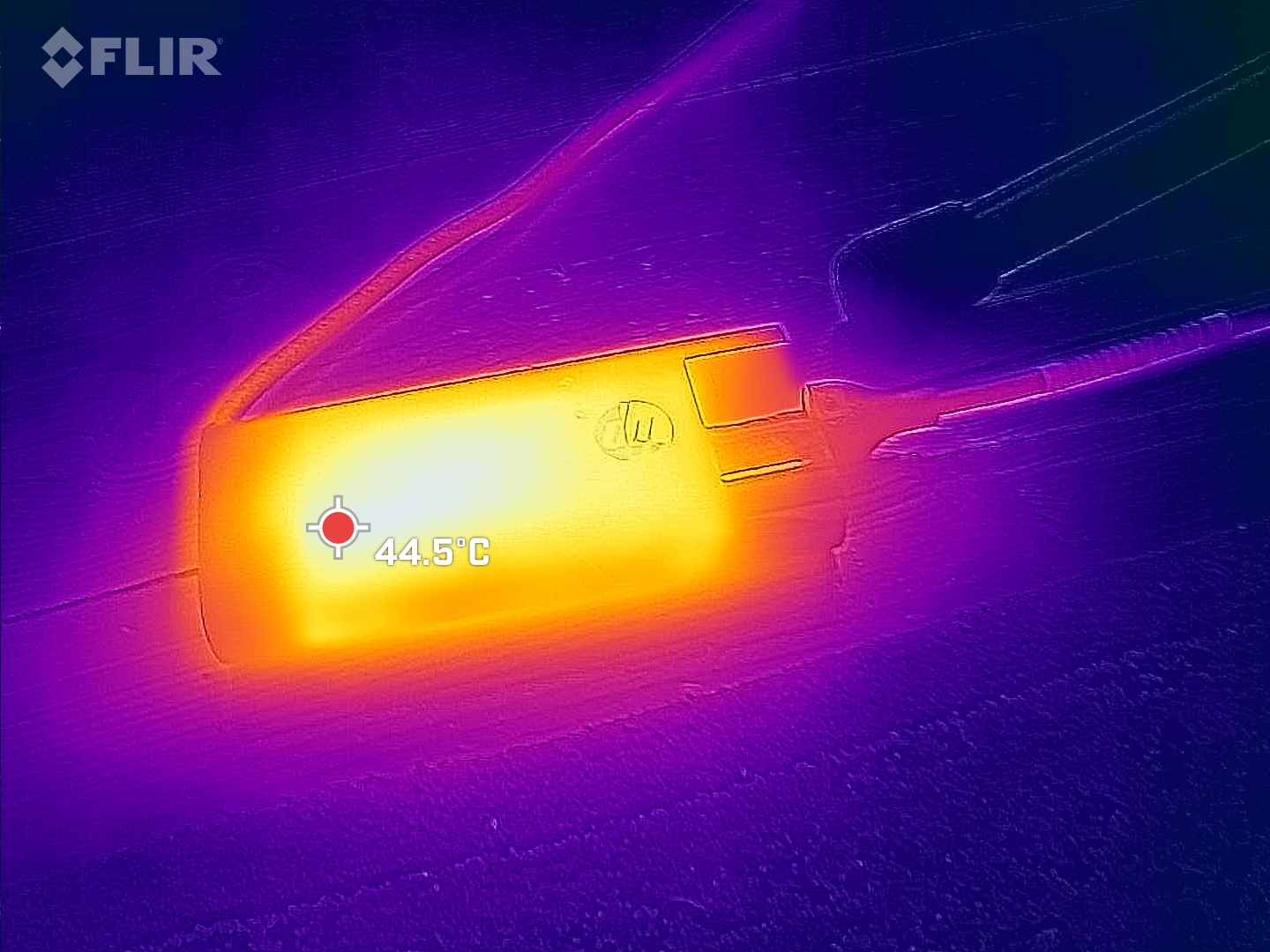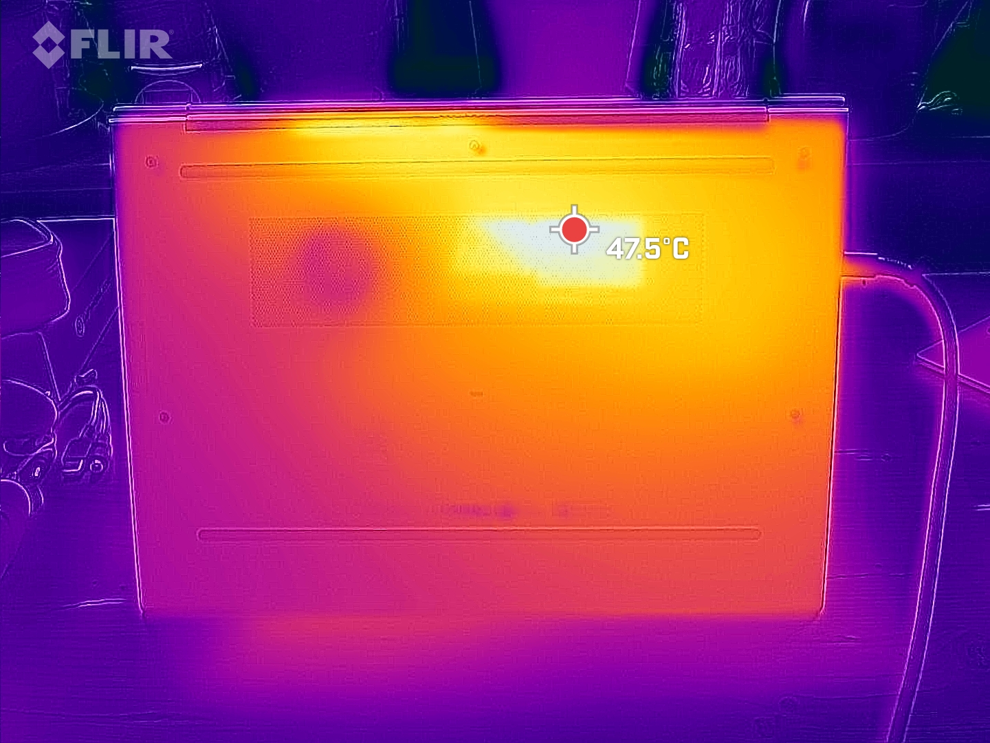(-) Auf der Unterseite messen wir eine maximalen Wert von 50 °C (im Vergleich zum Durchschnitt von 36.8 °C).
