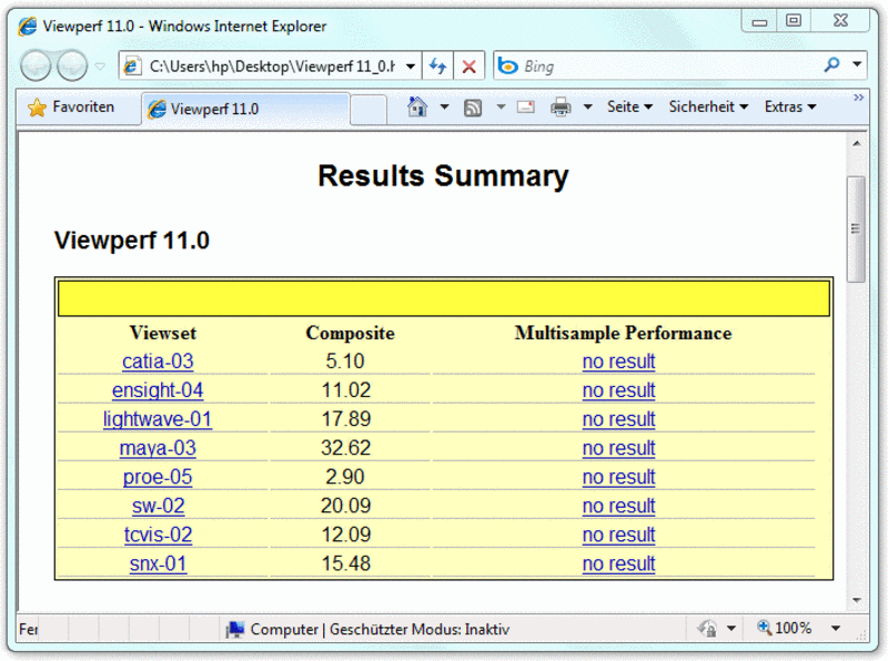 So sorgt etwa die Quadro FX880M im Fujitsu Celsius H700 bei Lightwave für einen absoluten Bestwert während das vorliegende HP 8540w mit ATI M5800 GPU bei Maya für einen absoluten Topscore gut ist. Die meist führende Nvidia Quadro FX2800M kann dagegen bei Catia davon ziehen.