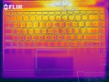 (+) Die Handballen und der Touchpad-Bereich erreichen maximal 32.1 °C und damit die typische Hauttemperatur und fühlen sich daher nicht heiß an.