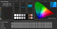 Schon im Auslieferungszustand kann der Bildschirm mit einer hervorragenden Farbdarstellung aufwarten. Mit einer Delta-E-2000-Farbabweichung von 1,64 bewegt er sich voll im Soll (Delta E kleiner 3). Unter einem Blaustich leidet das Display nicht. Auch werden die Graustufen recht ausgewogen darstellt. Das Ende der Fahnenstange ist allerdings noch nicht erreicht. Mittels einer Kalibrierung des Bildschirms konnten wir noch eine Verbesserung erreichen. So sinkt die Farbabweichung auf 0,99 und die Graustufen werden noch ausgewogener dargestellt. Die Farbräume AdobeRGB und sRGB kann das Display nicht abbilden. Hier liegen die Abdeckungsraten bei 52 Prozent (AdobeRGB) bzw. 82 Prozent (sRGB).