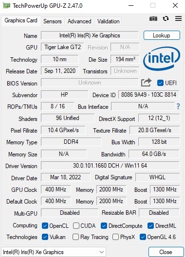| 86.5 % v7 (old) | 02 / 2021 | HP Envy 14-eb0010nr i5-1135G7, GeForce GTX 1650 Ti Max-Q | 1.6 kg | 17.9 mm | 14.00" | 1920x1200 | |