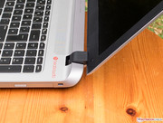 Anschlussmäßig herrscht beim Testgerät Minimalismus vor. Zwar sind immerhin alle drei USB-Ports in der Version 3.0 ausgeführt, Highlights wie eSATA, DisplayPort oder Thunderbolt sind aber Fehlanzeige. Auch auf einen VGA-Anschluss hat HP verzichtet, sodass man zur externen Bildausgabe auf HDMI oder drahtlose Techniken wie Intel Wireless Display angewiesen ist. HPs Sparsamkeit in dieser Hinsicht dürfte aktuell die wenigsten Nutzer stören, weist aber auch nicht gerade in die Zukunft. Der immerhin vorhandene Ethernet-Port sitzt ergonomisch günstig hinten links neben dem Stromanschluss, alle anderen Ports hat der Hersteller aber vorne vor DVD-Brenner und Lüftungsschlitzen (links) untergebracht, wo eingesteckte USB-Sticks und Kabel etwa beim Betrieb einer externen Maus stören können.