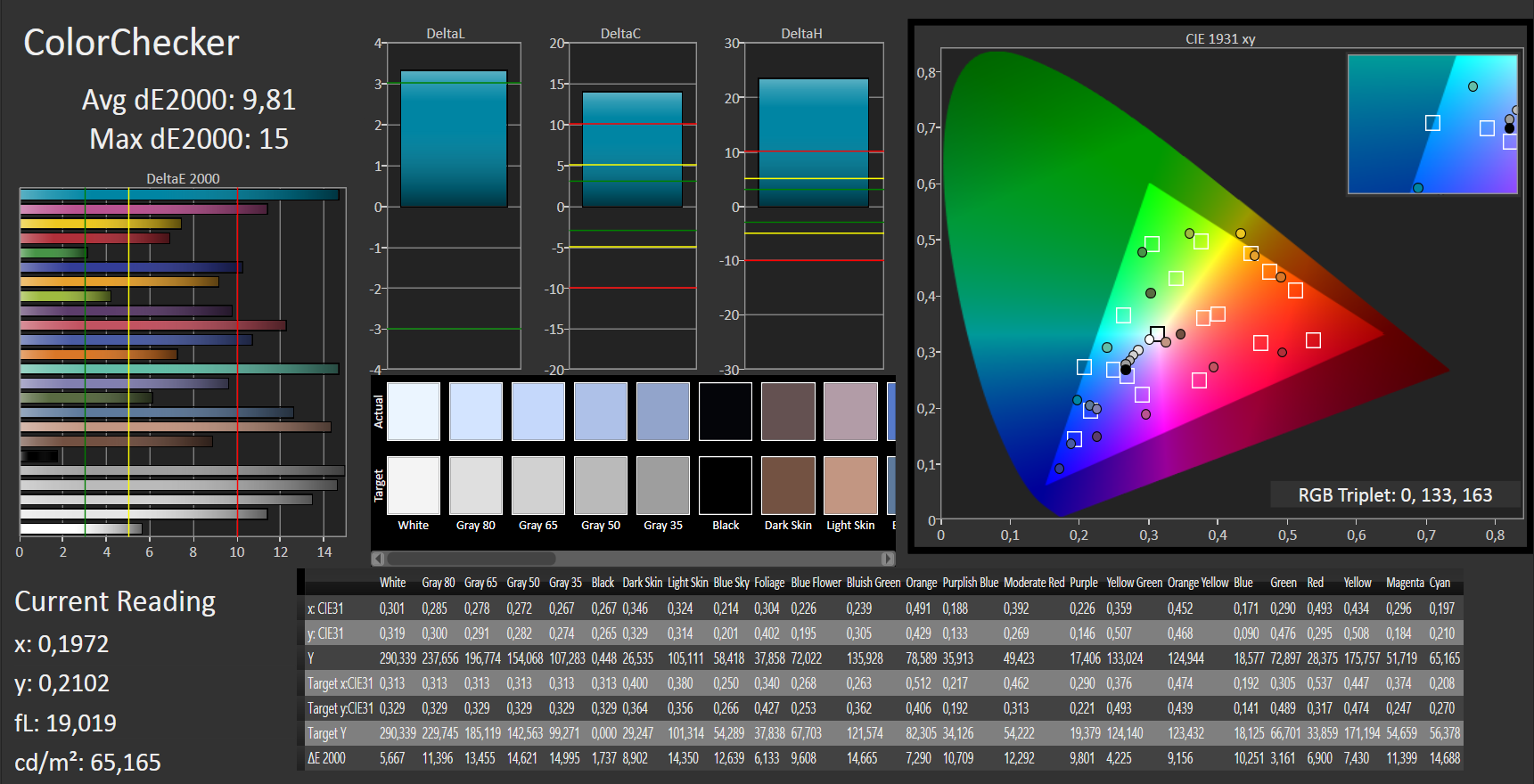 ΔE ColorChecker Calman: 9.81 | ∀{0.5-29.43 Ø4.78}