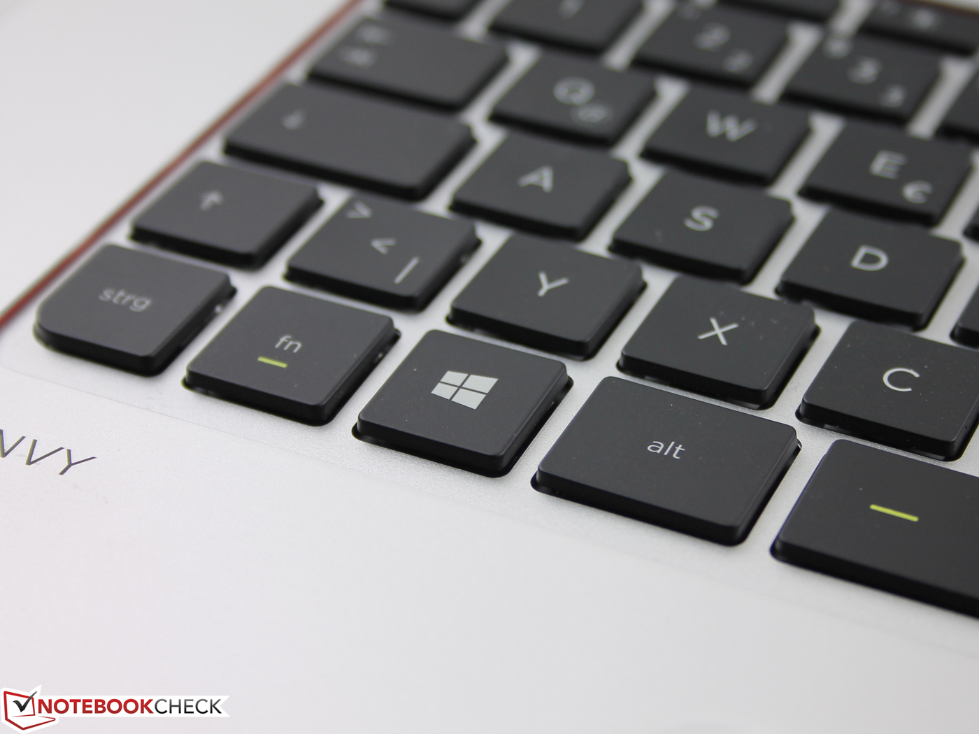 Im Vergleich zur Non-Touch-Version bringt das Touchpanel einen Edge-To-Edge-Look der Anzeige mit sich. Das ist bei fast allen berührungsempfindlichen Notebooks der Fall. Diese Kunststoff-Fläche vor dem eigentlichen bildgebenden Panel ist deutlich härter, kratzfester und druckresistenter als einfache Laptop-TFTs. Mit dem 10-Finger-Touchpanel (bis zu 10 einzelne Finger werden gleichzeitig erkannt) kommen wir gut zurecht, Eingaben werden exakt und reaktionsschnell umgesetzt.
