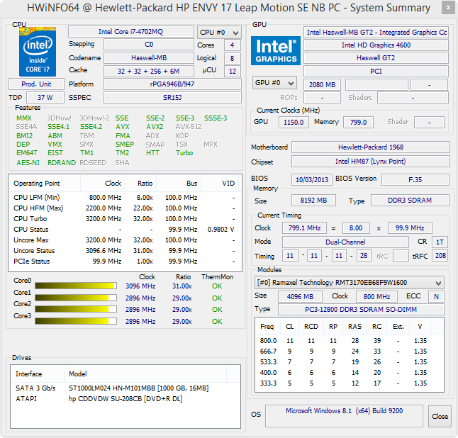 | HP Envy 17-j110eg GeForce GT 750M, 4702MQ, Toshiba MQ01ABD100 | Asus N750JV-T4110H GeForce GT 750M, 4700HQ, Seagate Momentus ST750LM022 HN-M750MB | HP Envy 17t-j000 GeForce GT 740M, 4700MQ, Toshiba MQ01ABD100 | Samsung ATIV Book 8 Touch 880Z5E X01 Radeon HD 8870M, 3635QM, Toshiba MQ01ABD100 | Dell XPS 15 (Late 2013) GeForce GT 750M, 4702HQ, Samsung SSD SM841 512GB | |