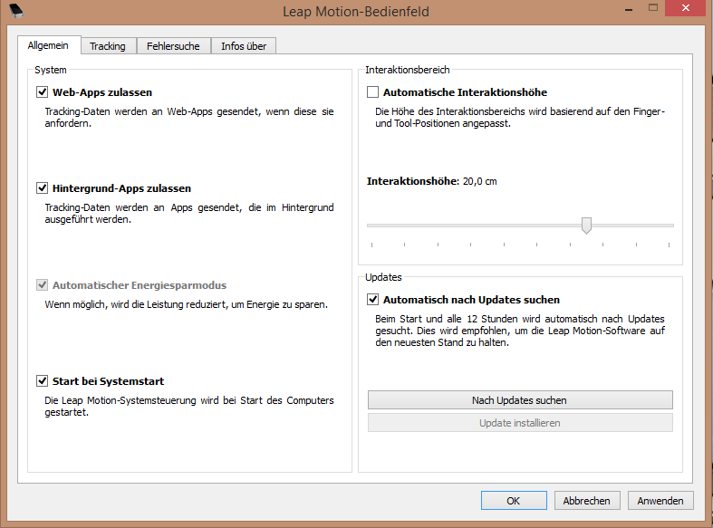 Wir laden aus dem Airspace Store "Touchless For Windows", was schon einmal den Dienst verneinte. Jack Lumber und einige andere Free Apps lassen sich mehr schlecht als recht steuern. Der Sensor kann mit einer reflektierenden Fläche kalibriert werden, was wir in Hoffnung auf bessere Navigationsergebnisse auch gemacht haben. Danach klappt es leider auch nicht besser.