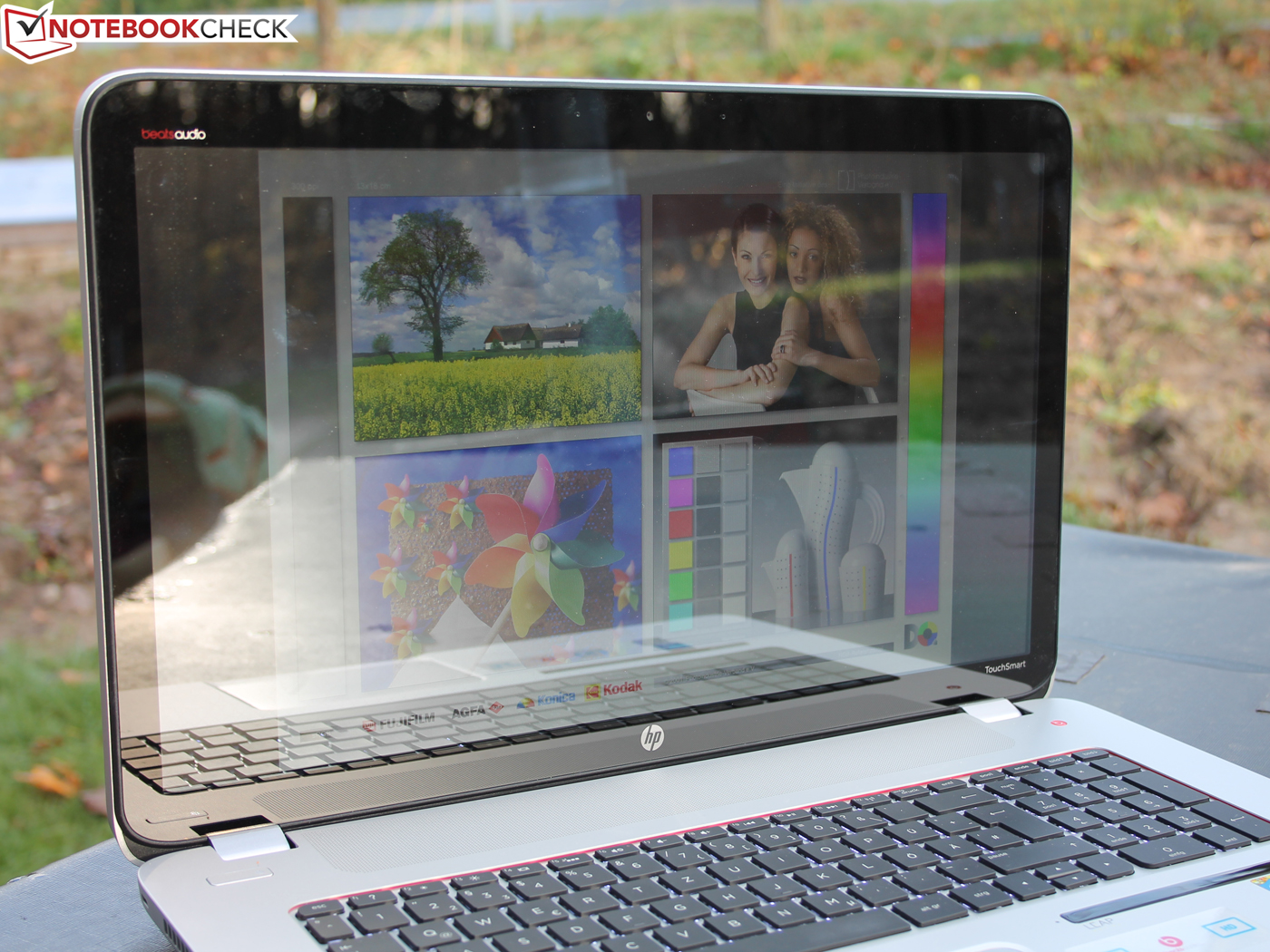 Wer mit dem Laptop ins Freie geht, der wird die matte Anzeige der Envy-Schwester vermissen. Trotz guter Helligkeit behindern starke Spiegelungen die Sicht. Bei Bewölkung oder im Schatten können Nutzer diesen aber entgehen und dann zeigt sich die Anzeige angenehm ausgeleuchtet.
