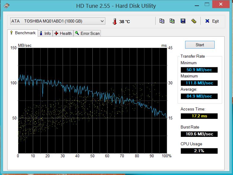 Die ein Terabyte fassende Festplatte im HP Envy 17 leistet gute Dienste und zeigt sich in den Festplatten-Benchmarks als ausreichend flott für eine Notebook-Festplatte. Ein SSD-Cache oder gar eine für das Betriebssystem reservierte SSD fehlt dem Notebook von Hewlett Packard jedoch, auch wenn noch ein freier 2,5"-Platz für ein solches Laufwerk vorhanden wäre. So reicht es für das Envy 17 zwar für einen befriedigenden Platz in der Massenspeicher-Gesamtwertung, so richtig rasant mag sich das Notebook mangels SSD aber trotz der beachtlichen CPU-Leistung nicht anfühlen. Zwar liegt die maximale Transferrate der Festplatte bei 111 Megabyte pro Sekunde und die durchschnittliche Transferrate immer noch bei guten 84,9 Megabyte pro Sekunde - an die schnellen Zugriffszeiten einer SSD kommt jedoch keine Festplatte heran. Mit 17,2 ms liegt das im Envy 17 verbaute Modell zudem im hinteren Mittelfeld bei der Zugriffszeit.