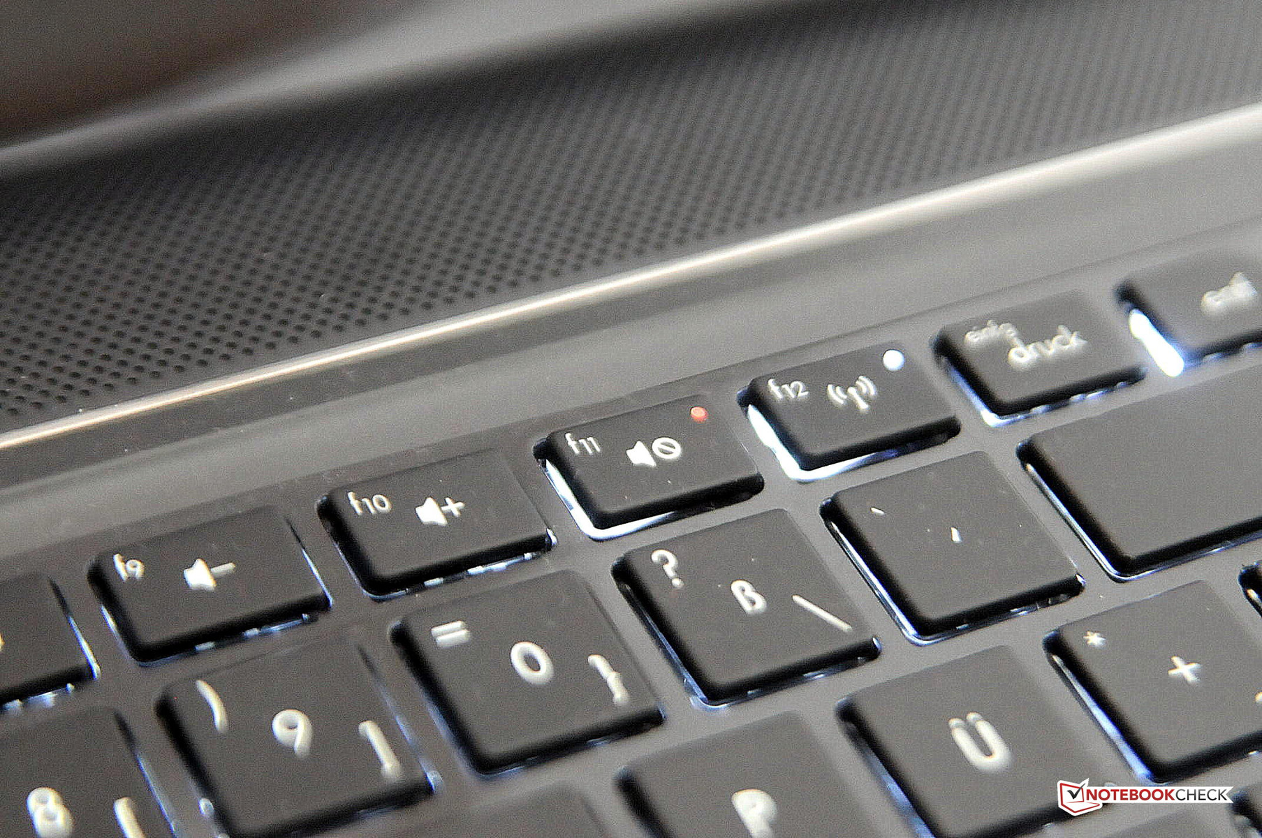 Auch das verbaute Touchpad konnte uns im Test überzeugen. Dieses befindet sich in einer Mulde und setzt sich somit von der restlichen Arbeitsfläche ab. Die glatte Oberfläche weist gute Gleiteigenschaften auf. Selbstverständlich unterstützt der Mausersatz mit einer Diagonalen von fast 11 cm Mehrfingergesten. Diese lassen sich in der bereits installierten Software konfigurieren. Die zwei separaten Tasten haben einen mittleren Tastenhub sowie einen klaren Druckpunkt. Das Klickgeräusch ist, wie bei den Tasten des Keyboards, nicht störend. Per Touchdruck in der oberen linken Ecke lässt sich das Touchpad aktivieren bzw. deaktivieren. Auch hier kann man anhand eines LED-Singals sehen, ob das Touchpad eingeschaltet ist oder nicht.