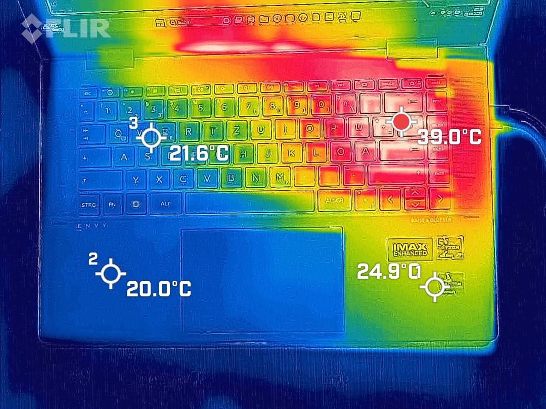 (+) Die Handballen und der Touchpad-Bereich sind mit gemessenen 25.6 °C kühler als die typische Hauttemperatur und fühlen sich dadurch kühl an.