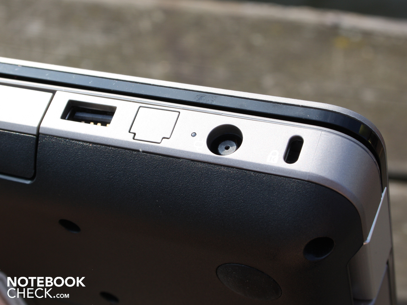 USB-Steckplätze gibt es nur drei Stück. Die Position des VGA- und des HDMI-Ports (links, hinterer Bereich) und des rechten USB-Ports (hinterer Bereich) erscheint für eine übersichtliche Kabelführung auf dem Schreibtisch sinnvoll. Beim Einsatz der Maus rechts oder links wird diese nämlich nicht durch einen Kabelstrang behindert. Das vertieft sitzende Scharnier verhindert eine Steckplatz-Nutzung der Rückseite.