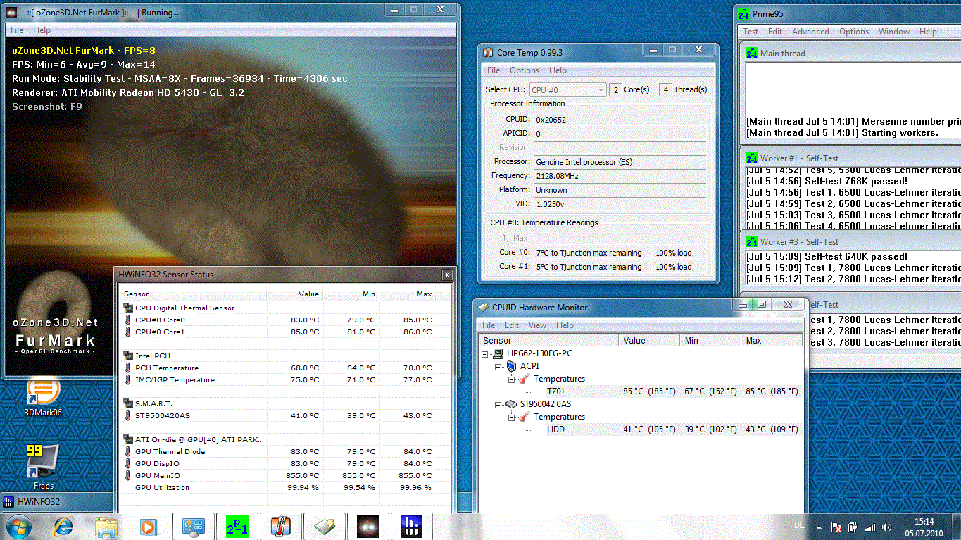 Ursache für die gute Systemperformance ist die schnelle Seagate Festplatte mit 7.200 U/min. Ein HDD-Score von 4.077 Punkten im PCMark Vantage ist beachtlich. Typische 2.5-Zoll HDDs mit 5.400 U/Min erreichen zwischen 2.500 und 3.000 Punkten. Die Festplatte kann als Flaschenhals dafür sorgen, dass auch Laptops mit einer stärkeren dedizierten GPU nicht zwangsläufig eine sehr gute Systemperformance haben. Zum Beispiel ein Acer 8942G-334G64Mn (ATI HD 5650), das mit 4.755 Punkten schlechter abschneidet.