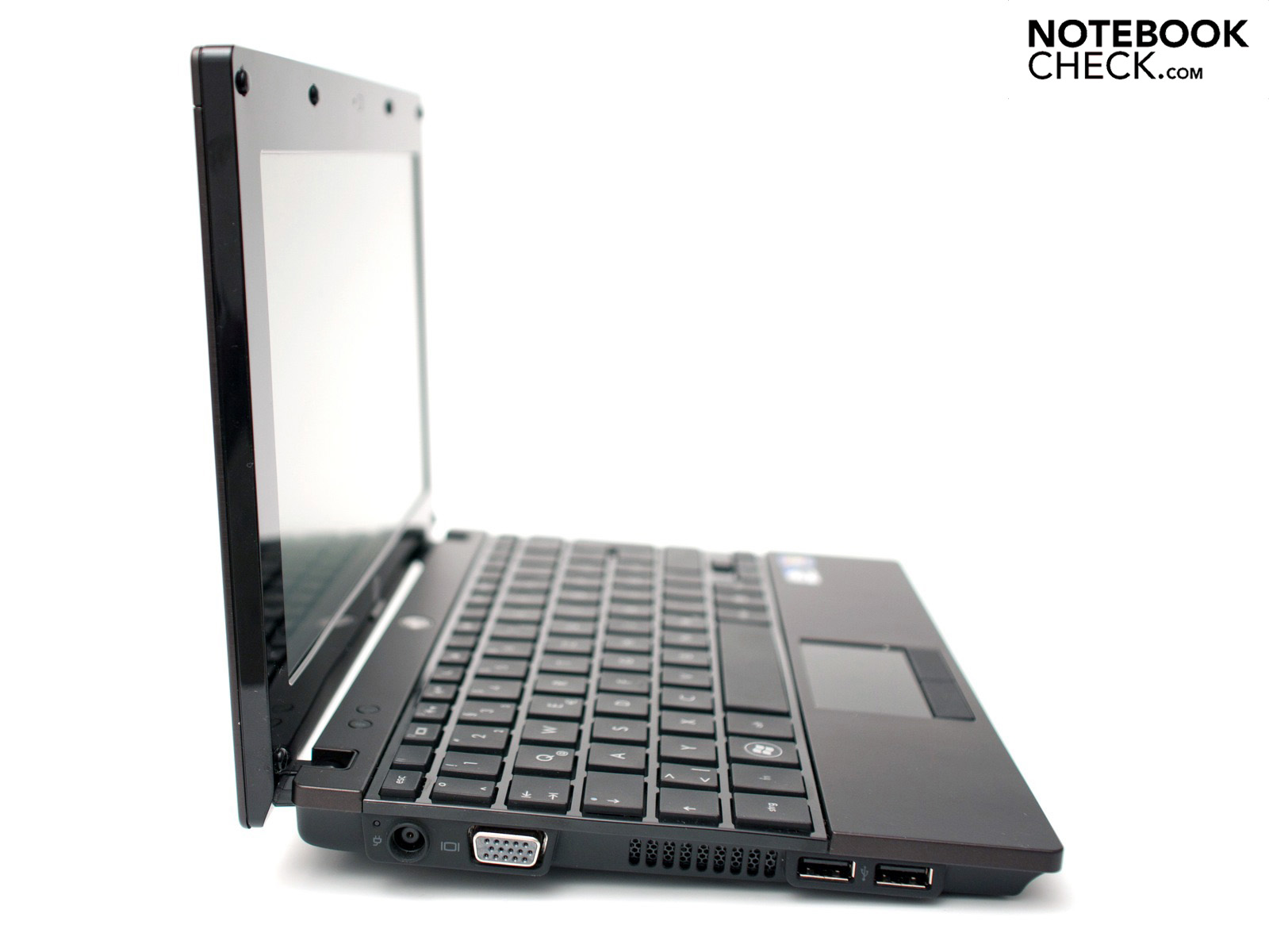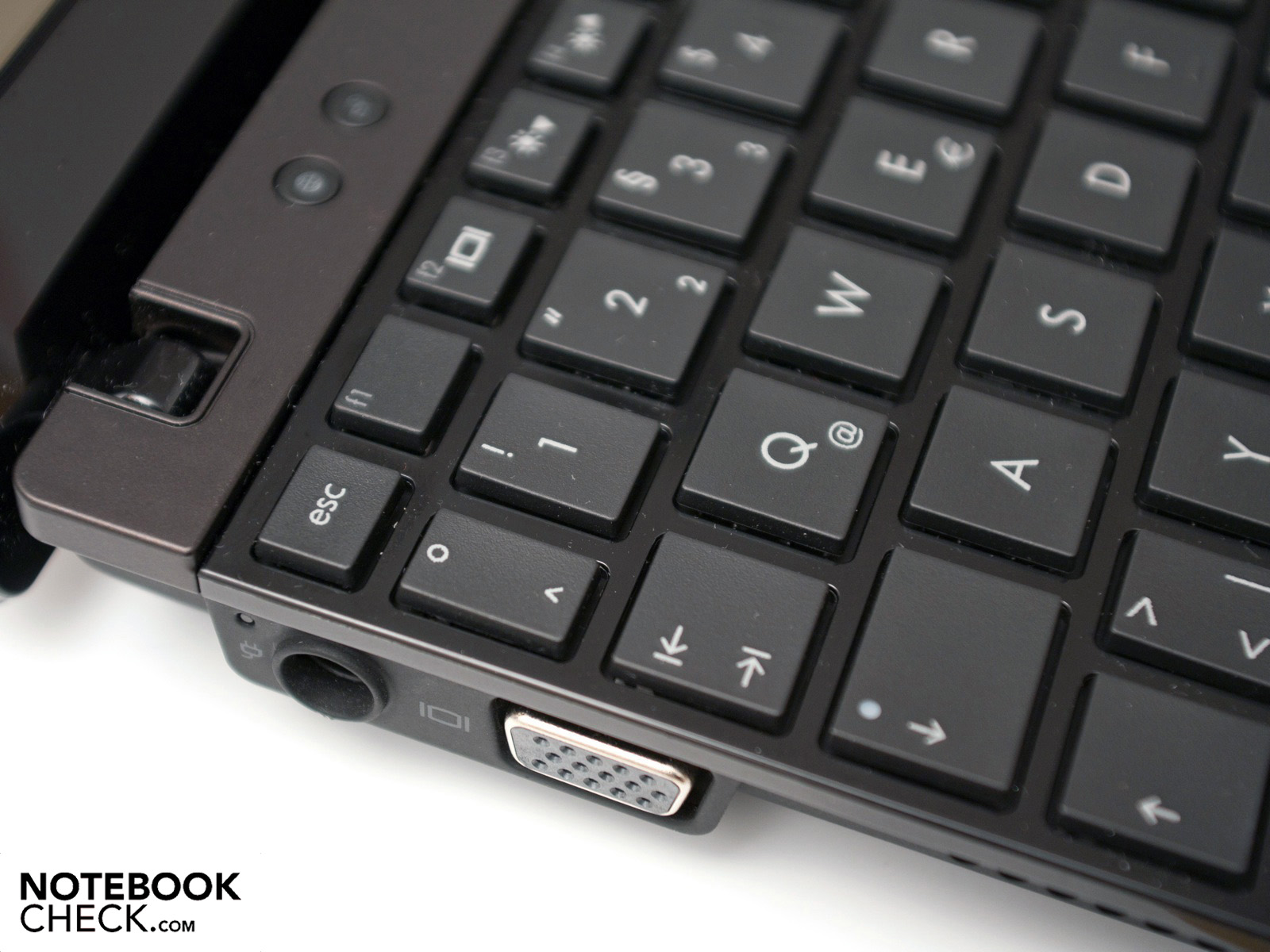 Ein Netbook ist durch die kleine Bauweise oft bei der Tastatur eingeschränkt. HP geht in diesem Bereich einen anderen Weg und nutzt nahezu die gesamte Gehäusebreite für die Tastatur. Dadurch entsteht ein großzügiges Tastaturlayout (Island-Style – Einzeltasten, deutsches Layout) mit einer Auflagefläche von 14 x 14 Millimetern pro Taste. Besonders die große rechte Shift-Taste, der sehr angenehme und nicht zu schwammige Druckpunkt sowie ein geringer Hub überzeugen. Negativ zu bewerten ist die Zifferntaste „1“, die im Vergleich zu den sonstigen Tasten deutlich kleiner ausfällt und es vermehrt zu Tippfehlern kommen kann. Die Eingewöhnung geht schnell von der Hand und Tippen mit zehn Fingern ist kein Problem. Die geringe Geräuschentwicklung und zwei Zusatztasten oberhalb der Tastatur für den Aufruf des Internetbrowsers und eines E-Mail-Programms unterstreichen die professionelle Ausrichtung.