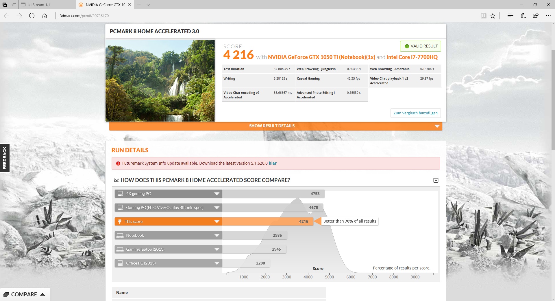 | PCMark 8 Home Score Accelerated v2 | 4216 Punkte | |