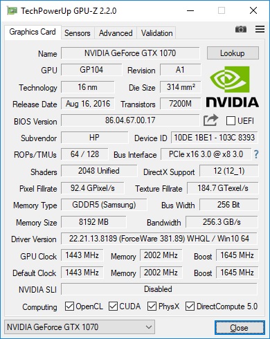 | GPU | GeForce GTX 1070 | GeForce GTX 1070 | GeForce GTX 1070 | GeForce GTX 1070 | GeForce GTX 1070 |
