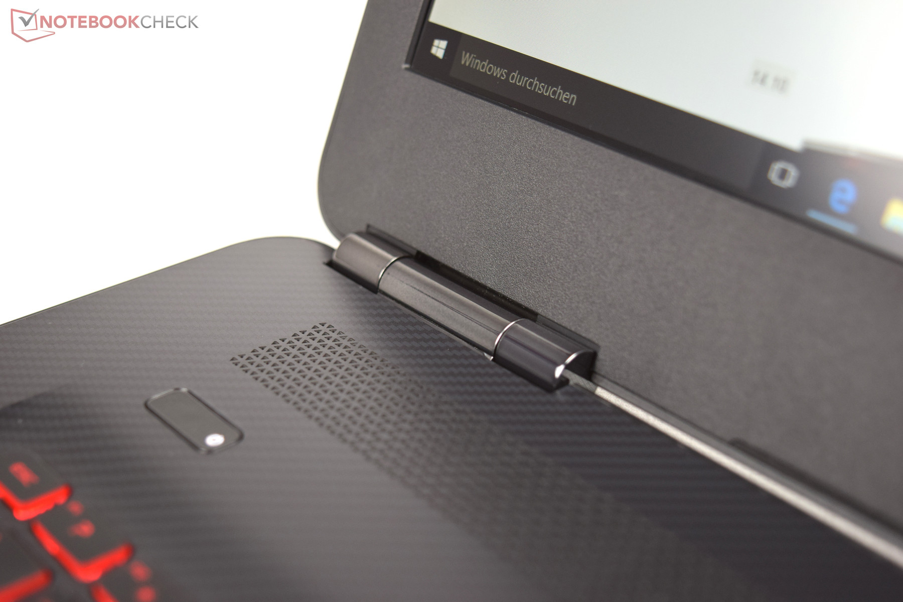 HP orientiert sich bei der aktuellen Omen Serie optisch am Vorgänger. Somit finden wir auch bei unserem Test-Sample das Mesh-Muster auf dem Deckel und der Handballenauflage. Das rote Omen Logo befindet sich mittig auf dem Displaydeckel und unterstreicht damit, dass es sich hier um ein Gaming-Laptop von HP handelt. Das schwarzrote Design verleiht dem Gaming-Spross einen individuellen Touch, welches zudem einen deutlichen Wiedererkennungswert bietet. Durch das rot beleuchtete Keyboard wird diese Designlinie auch im geöffneten Zustand fortgeführt und sorgt insgesamt für einen stimmigen Eindruck. Beim genaueren Betrachten finden sich nur kleinere Änderungen im Design. So wird auf den Einsatz eines optischen Laufwerks komplett verzichtet, und der Akku ist nun fest verbaut.