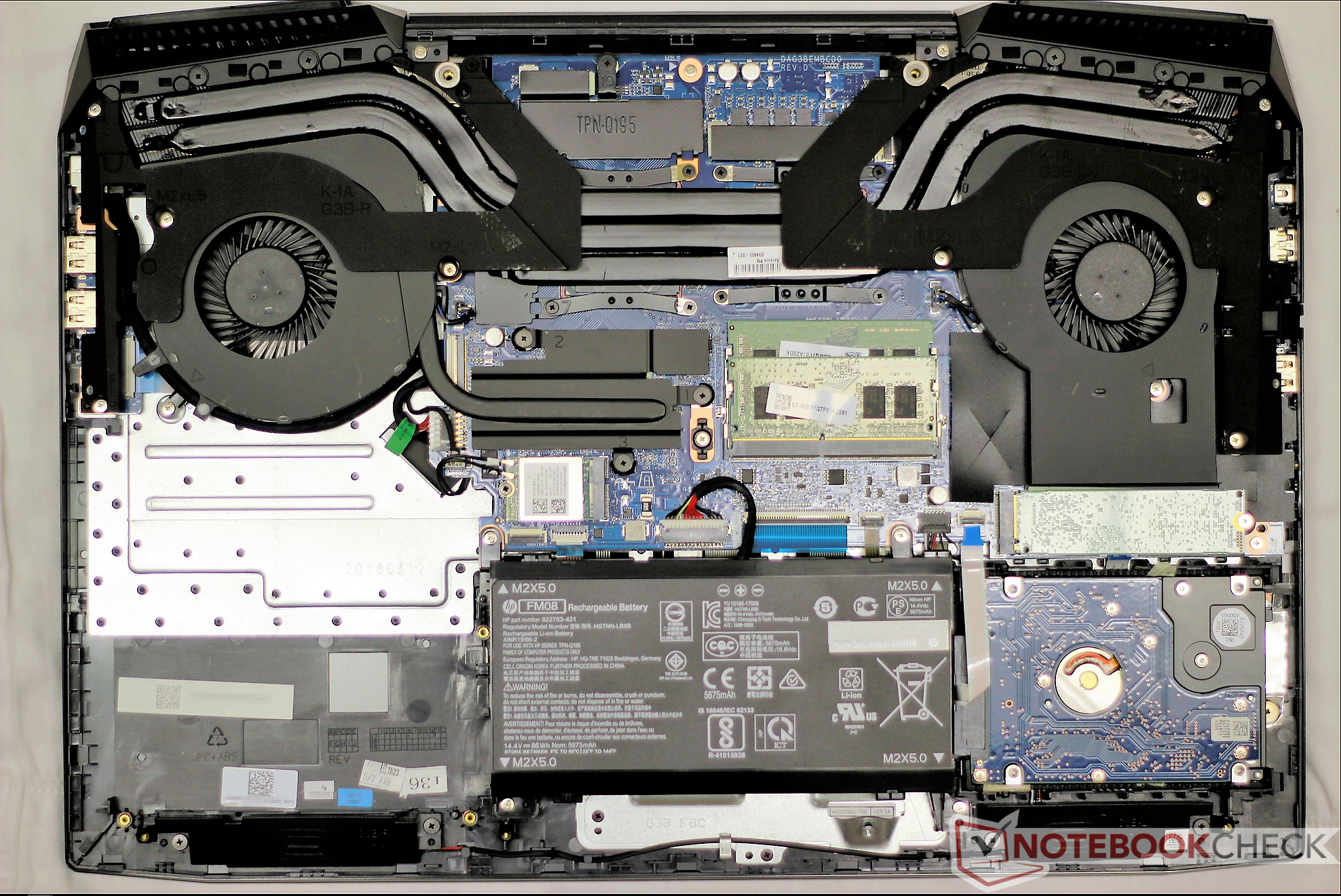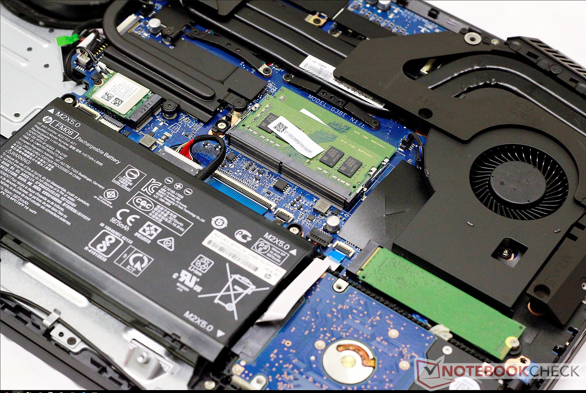Das Gehäuse ist bis auf einen einzigen Unterschied quasi identisch zum letztjährigen Omen 17: Dem Neuling fehlt das optische Laufwerk, stattdessen klafft im Inneren eine große ungenutzte Lücke. Alles andere wurde vom Vorgänger übernommen, daher präsentieren wir zwar Fotos der überarbeiteten internen Hardware, sparen uns aber im Gegenzug tiefergehende Details zum Gehäuse, den Anschlüssen, der Verarbeitungsqualität und den Eingabegeräten. Details hierzu finden sich im letztjährigen Test des HP Omen 17.