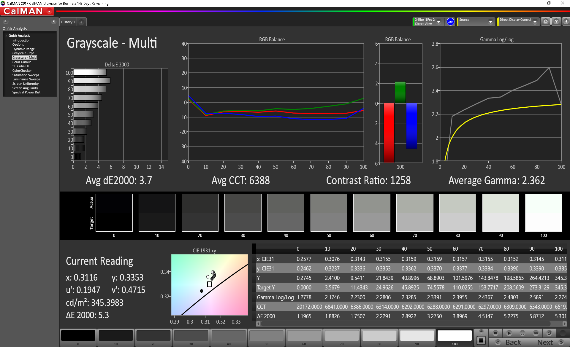 ΔE Greyscale Calman: 3.7 | ∀{0.09-98 Ø5}