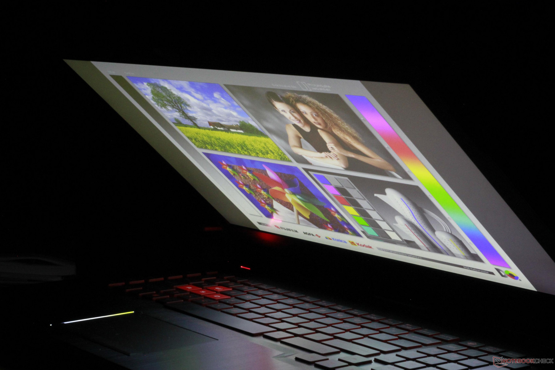 Der Bildschirm des neuen Omen 17 ist zweifellos eine seiner größten Stärken. Das Panel von AU Optronics bietet eine Bildfrequenz von 144 Hz und unterstützt obendrein auch Nvidias G-Sync. Die Reaktionszeiten sind blitzschnell und von PWM ist weit und breit nichts zu sehen. Derzeit ist dieses Display (144 Hz, Full-HD, IPS) das einzige erhältliche. Mit durchschnittlich 320 cd/m2 ist es heller als die meisten Konkurrenten, deren Gros sich im Bereich zwischen 250-300 cd/m2 tummelt. Mit 87 % ist die Ausleuchtung auch verhältnismäßig gleichmäßig. Das Kontrastverhältnis ist ordentlich: Schwarztöne wirken sehr tief und Fotos sind scharf und sehr detailliert. Zusammen mit der sehr guten Farbwiedergabe (siehe unten) ergibt dies ein ausgesprochen gutes Display.