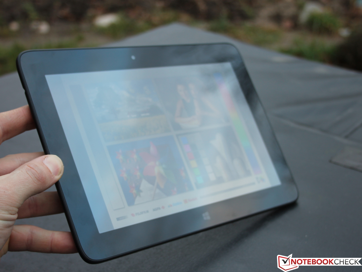 Die 10-Zoll-Anzeige löst in 1.920 x 1.200 Pixeln auf. Dies entspricht einer Pixeldichte von 220 ppi. Hier kommen Transformer (155 ppi) und Miix 2 8 (188 ppi) nicht mit. HP hat in der Voreinstellung große Symbole für Windows eingestellt. Kein Wunder, kleine Menübäume und Filetrees können unsere Finger kaum noch exakt treffen.