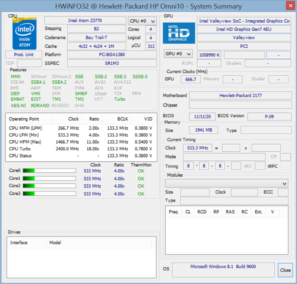 Sehr überzeugt gibt sich HP von der Hardware: „Mit der superschnellen Intel-Atom-Prozessorserie Z3000 liefert dieses topaktuelle Tablet eine unglaubliche Leistung.“ Der Intel Atom Z3770 (Bay Trail T) ist ein Quad-Core-SoC mit einem Turbo-Takt von 1,46 bis 2,4 GHz. Der Basis-Takt ist also etwas höher als beim Atom Z3740 (1,33 GHz; Miix 2 8, Transformer Book T100TA). Ob dadurch nennenswerte Unterschiede in der Rechenleistung erzielt werden, das ermitteln wir im folgenden Kapitel.