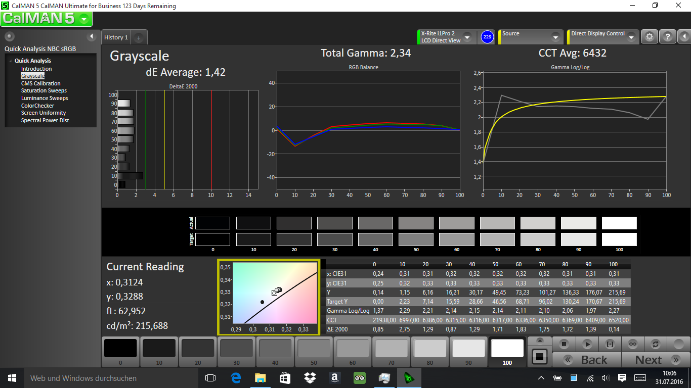 ΔE Greyscale Calman: 1.42 | ∀{0.09-98 Ø5}
