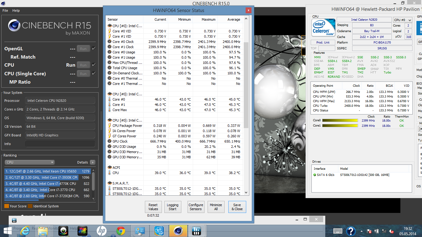 Das HP Pavilion 11-n070eg x360 verfügt über einen Intel Celeron N2820 Prozessor und 4 GB Arbeitsspeicher (DDR3L-SDRAM). Als Grafiklösung wird Intels hauseigener HD Graphics Gen7 4EU-Chip genutzt. Dieser kann 2 GB RAM als Videospeicher verwenden, trotzdem sind damit keine aufwendigeren Bildbearbeitungen oder Spiele möglich. Eine Festplatte von Seagate, die Seagate ST500LT012, mit 5400 Umdrehungen pro Minute und einer Kapazität von 500 GB verrichtet im HP Pavilion x360 ihren Dienst. Die aufgelistete Konkurrenz nutzt SSDs.