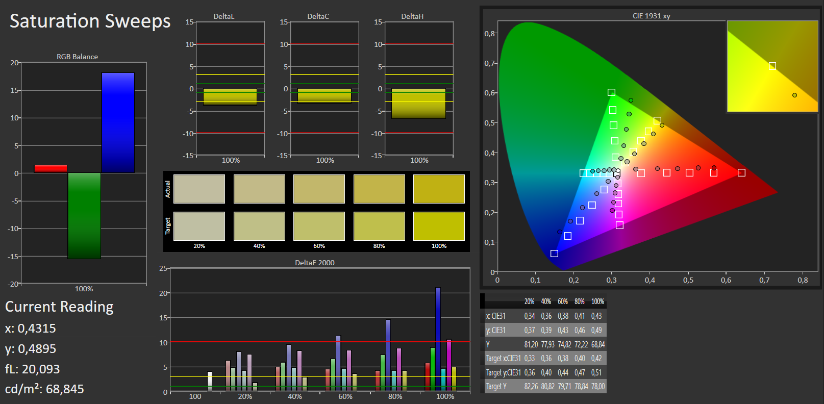 | sRGB Coverage (%) | 54.9 | 55.6 1% | 60.5 10% | 64.1 17% | 84.8 54% | |