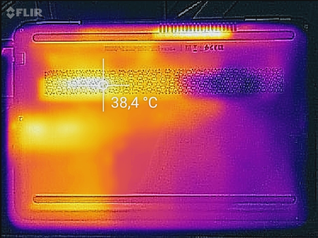 (+) Die Handballen und der Touchpad-Bereich erreichen maximal 32.1 °C und damit die typische Hauttemperatur und fühlen sich daher nicht heiß an.