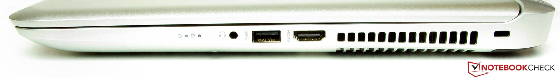 Die Schnittstellenauswahl hat das Pavilion mit seinem Vorgänger gemein. HP spendiert lediglich einen Videoausgang (HDMI). Von den drei USB-Anschlüssen arbeiten zwei nach dem USB-3.0-Standard. Verbesserungen finden sich bei der Anordnung der Steckplätze. Diese sind weitgehend in den hinteren Bereichen der beiden Seiten positioniert. Somit bleiben die Bereiche neben der Handballenablage frei von Kabeln.