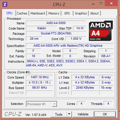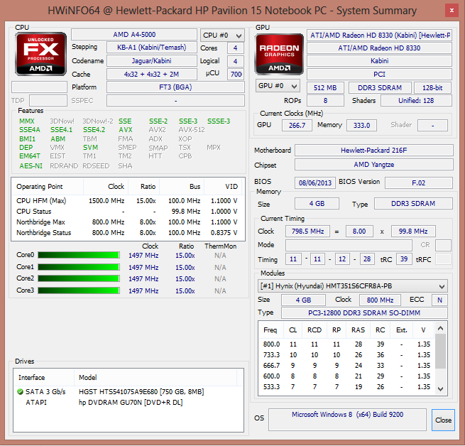 Hewlett Packard verbaut im Pavilion die AMD A4-5000 APU. Sie entstammt der aktuellen Kabini Generation. Wie alle aktuellen AMD APUs basieren auch die Kabini APUs auf AMDs Jaguar Architektur. Bei dem CPU-Teil der APU handelt es sich um einen Vierkernprozessor, der mit einer Geschwindigkeit von 1,5 GHz arbeitet. Ein Turbo existiert nicht. AMD gibt für die APU eine TDP von 15 Watt an. Mehr Informationen und viele Benchmark-Resultate finden sich in dem Bericht über unseren Kurztest der A4-5000 APU.
