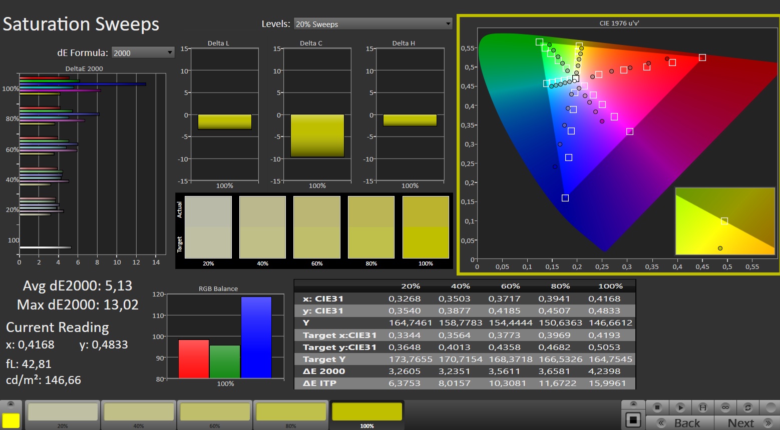 ΔE ColorChecker Calman: 5.13 | ∀{0.5-29.43 Ø4.77}