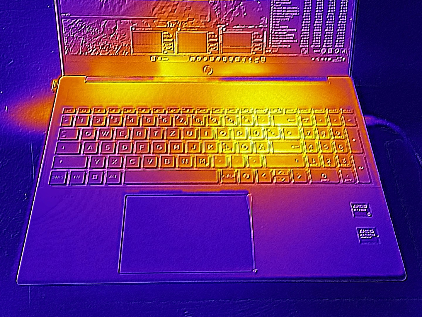 (+) Die Handballen und der Touchpad-Bereich erreichen maximal 32 °C und damit die typische Hauttemperatur und fühlen sich daher nicht heiß an.