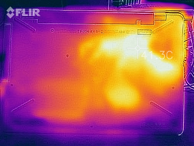 (±) Auf der Unterseite messen wir eine maximalen Wert von 41.6 °C (im Vergleich zum Durchschnitt von 39.2 °C).