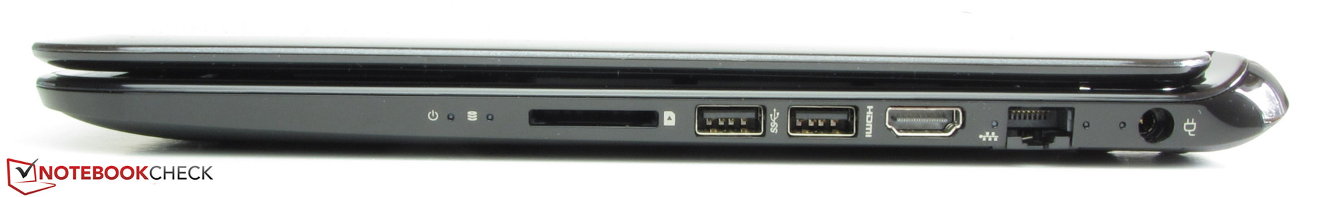 Alle drei Vergleichsgeräte sind mit den heutzutage üblichen Anschlüssen ausgestattet. Jeder der drei Rechner kann mindestens zwei USB 3.0-Steckplätze vorweisen. Allerdings verfügt keines der Ultrabooks über einen VGA-Ausgang. Wer noch einen alten Beamer oder einen alten externen Monitor ohne DVI-/HDMI-Eingang nutzt, könnte sich mit einem HDMI-auf-VGA-Adapter (ab etwa 20 Euro) behelfen. In zwei Punkten fällt das Sleekbook gegenüber den Konkurrenten zurück. So hat HP dem Sleekbook kein optisches Laufwerk spendiert. Darüber hinaus bietet das HP-Ultrabook nur einen Fast-Ethernet-Steckplatz. Die Konkurrenz kann mit Gigabit-Ethernet aufwarten. HP hat die meisten Steckplätze günstig im hinteren Bereich der rechten Seite positioniert. Somit bleibt der Bereich neben der Handballenablage frei von Kabeln.