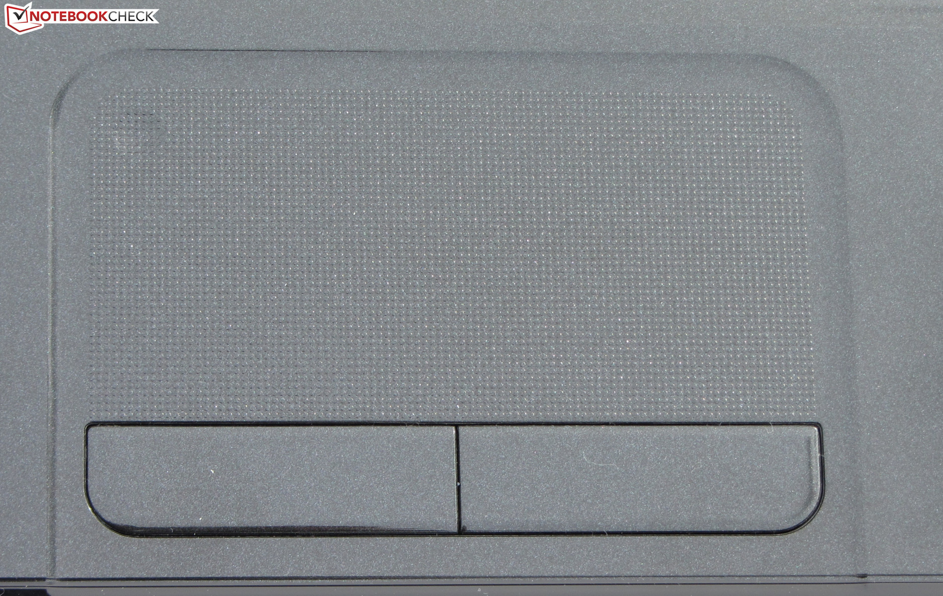 Das etwa 9,7 x 4,6 cm große multitouchfähige Touchpad ist Teil der Handballenablage und sitzt etwas vertieft in dieser. Die genoppte Oberfläche behindert die Finger nicht beim Gleiten. Die einzelnen Multitouchgesten können im Konfigurationsmenü individuell ein- und ausgeschaltet werden. Standardmäßig sind nicht alle verfügbaren Gesten aktiviert. In der linken oberen Ecke des Touchpads findet sich eine kleine Mulde, die als Ein-/Ausschalter für das Pad dient. Ein doppeltes Tippen schaltet das Pad ein bzw. aus. Den aktuellen Status zeigt eine kleine LED an, die etwas oberhalb des Pads sitzt. Die beiden Maustasten verfügen über einen klar hör- und fühlbaren Druckpunkt und einen kurzen Hub.