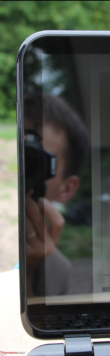 Das Chassis hat sich nicht verändert, der Touchscreen zieht aber eine Modifikation des Deckels nach sich. Wo vordem ein Rahmen das Glare-TFT umgab, das sitzt heute ein Edge-to-Edge-Panel. Das eigentliche bildgebende Panel sitzt natürlich hinter dieser spiegelglatten Kunststoff-Scheibe. Zwischen diesen beiden Ebenen ist keine Luft bzw. ein Abstand erkennbar oder zu erfühlen.