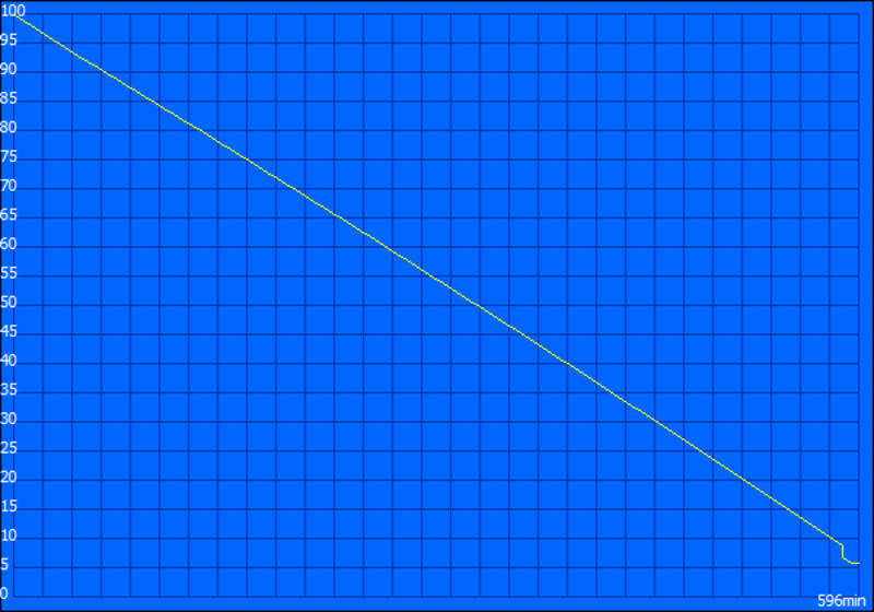 Unser dm-3180eg Testgerät tritt in dieser Disziplin mit einem Lithium-Ionen Akku mit 55 Wattstunden Kapazität an. Damit erreicht es bei geringer Belastung mit Energiesparprofil, abgeschalteten Wireless-Modulen und minimaler Helligkeit eine maximale Laufzeit von fast 10 Stunden im BatteryEater Reader's Test.