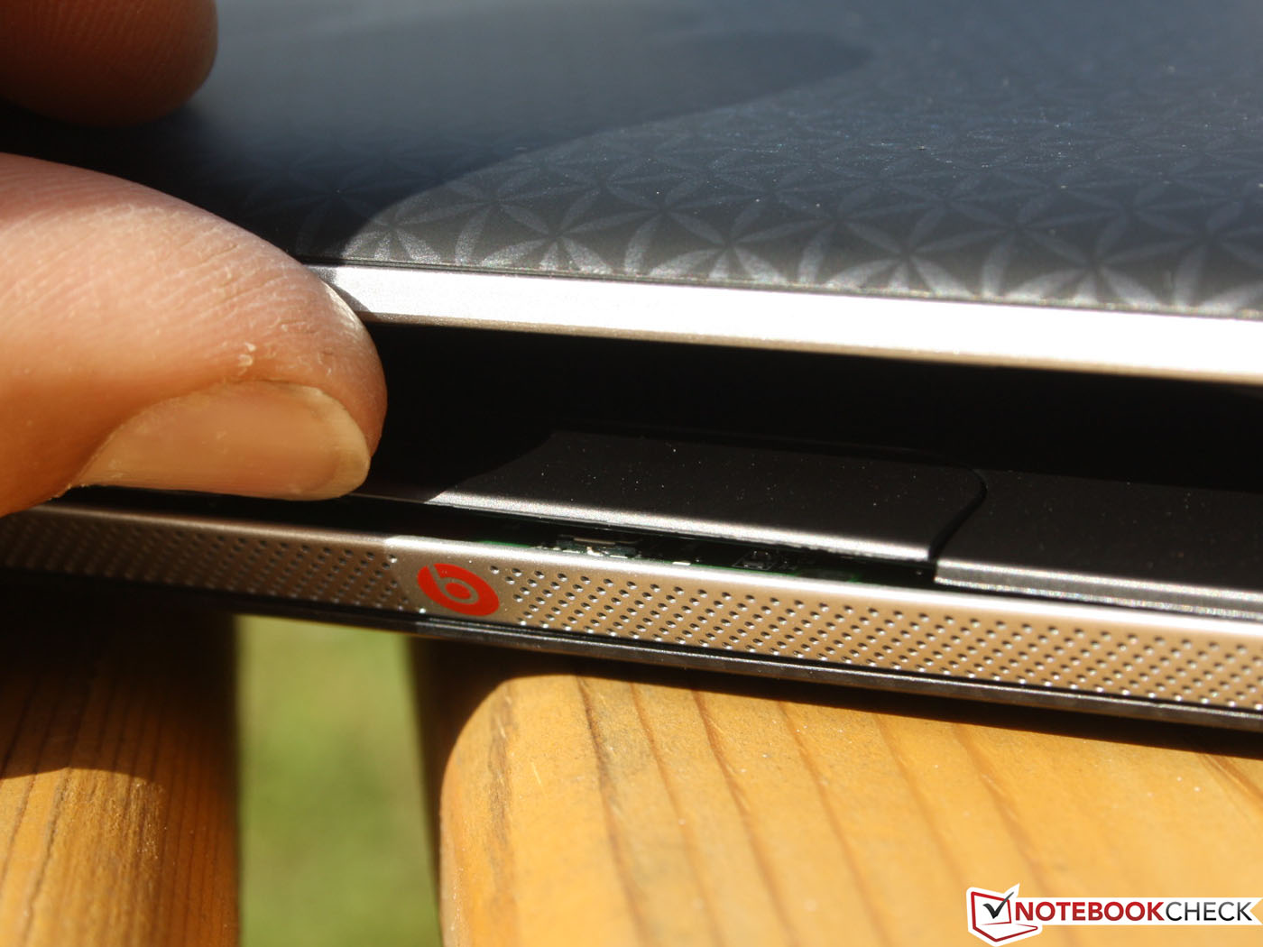 Die kleinen Stereo-Lautsprecher (Vorderseite) geben einen lauten und im Bereich der Mitten und Höhen relativ ausgewogenen Klang wieder. Tiefen fehlen allerdings komplett, das können die kleinen Membrane nicht abbilden. Die beatsaudio-Settings geben Presets für die internen Lautsprecher, für In-Ear-Kopfhörer, für passive Standard-Kopfhörer und für die HDMI-Soundausgabe vor. Ohne diese Verbesserungen wirkt das Klangbild dünn und noch weniger differenziert. Die Lautstärke ist für einen 11,6-Zoller sehr gut.