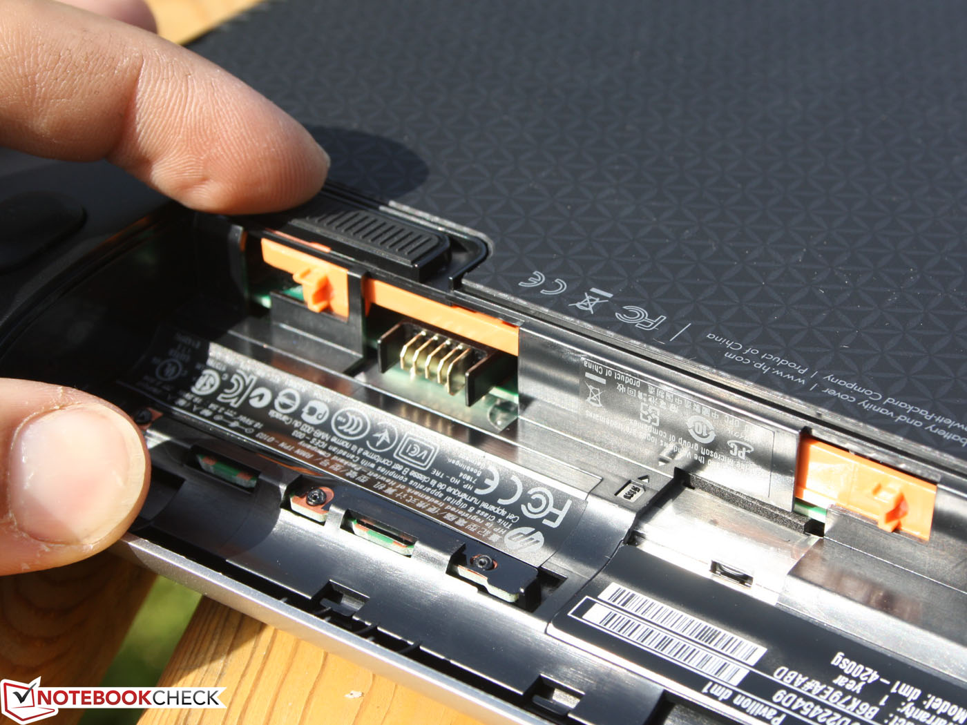 Einfache Wartung und schneller Tausch von Komponenten scheint bei HP von großer Wichtigkeit zu sein. Auf eine Verschraubung der Bodenplatte wurde daher verzichtet, die Platte kann einfach nach vorn hin abgeschoben werden. Das legt nicht nur das Innenleben frei, sondern macht auch die Lüfterreinigung möglich.