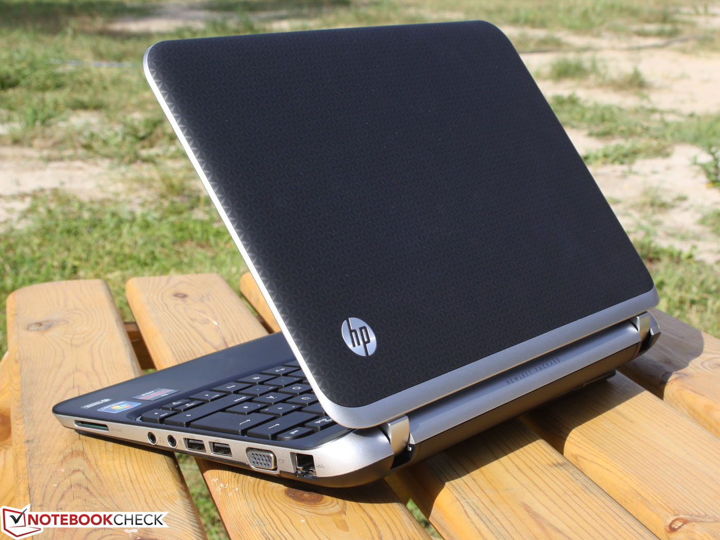 HP lässt sich vom Massen-Trend superflacher Subnotebooks nicht beirren und lässt einen 11,6-Zoller bauen, der im hinteren Bereich seine Wuchtigkeit betont. Das Gerät braucht die Bauhöhe von 32 Millimetern an dieser Stelle, um den entnehmbaren Akku unter zu bringen. Im Vergleich zu vielen Ultrabooks, aber auch zu dem einen oder anderen Low-Cost Mini (Lenovo S206), erscheint ein abnehmbarer Akku schon fast als Rarität.