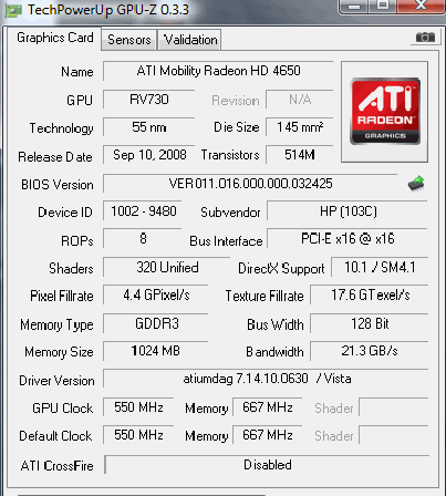 Das besondere an unserem Testgerät dv6-1211eg ist die Kombination eines günstigen Intel-Pentium-Prozessors mit einer passabel leistungsstarken und daher beliebten ATI HD4650 Grafikkarte mit 1024 MB GDDR3 Videospeicher.