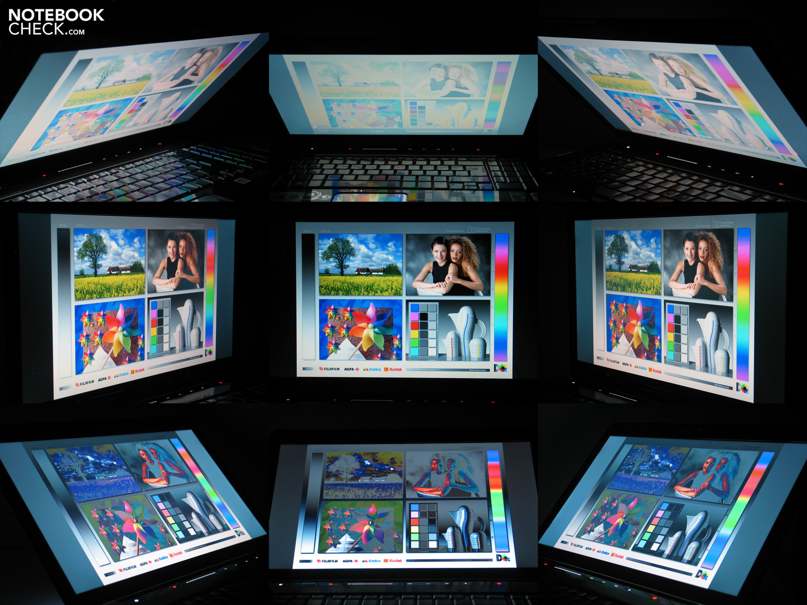 Die Farbdarstellung des eingesetzten Displays ist subjektiv als gut zu beschreiben, allerdings ist in nahezu allen Anwendungslagen mit Spiegelungen zu rechnen. Diese konnten selbst bei mäßigen Lichtverhältnissen im Innenbereich beobachtet werden. Eine Verwendung des Notebooks im Freien wird damit praktisch hinfällig.