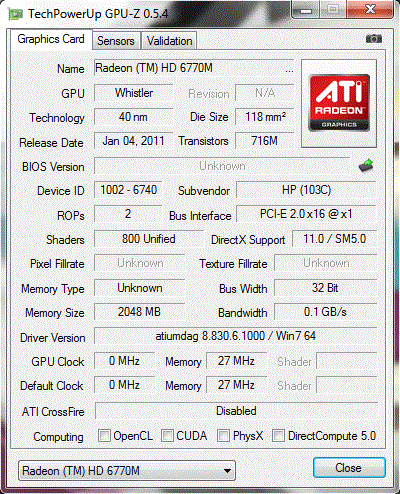 Die von HP gewählte Grafikkarte stammt aus dem gehobenen Mittelklasse-Segment. AMDs DirectX 11 fähige Radeon HD 6770M wird von anderen Notebookherstellern bisher kaum verwendet. Zu Unrecht wie wir finden, punktet die Grafikkarte doch mit einem tollen Preis-Leistungsverhältnis und einem feinen Kompromiss aus Leistung und Energieverbrauch.