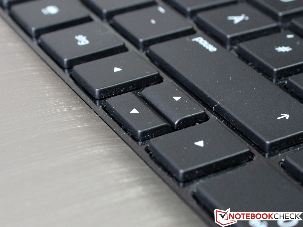 Vielschreiber werden den etwas frühen und zu weichen Druckpunkt kritisieren, der ein besseres Feedback verhindert. Hohe Schreibgeschwindigkeiten konnten wir dennoch erzielen, zudem scheint die Geräuschentwicklung gegenüber früheren Geräten leiser auszufallen. Einen klapprigen Eindruck erweckt lediglich die Befestigung der Tastatur, die speziell am oberen Rand etwas zu locker ausfällt.