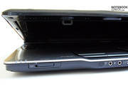 Die Helligkeit und Farbqualität des LG.Philips Bildschirms sind mäßig, die Blickwinkelstabilität schwach. Dafür bietet das Desktop Replacement Notebook einen HDMI Ausgang zum Anschluss digitaler Fernseher/Monitore.
